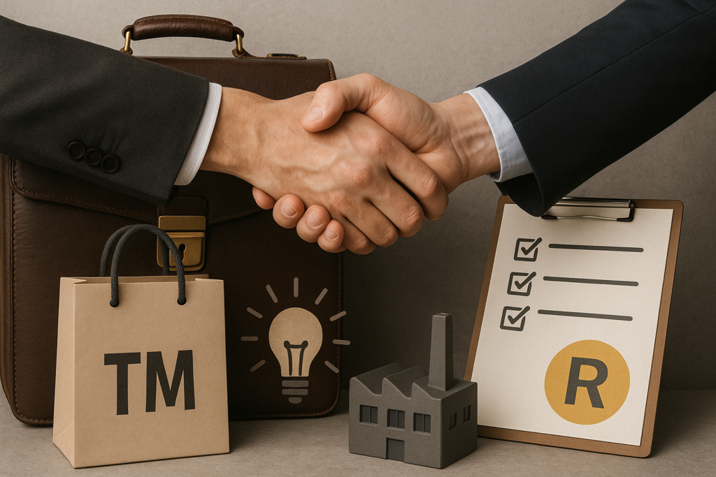 → 欲しいブランドと関連資産を選んで取れる反面、契約や許認可、従業員の移籍など移し替え手続きが多い。 - C. 権利だけ買う(商標譲渡・資産買収/ライセンス)